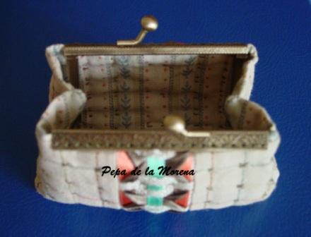 El monedero que estáis viendo lo borde con cintas sobre deshilados: