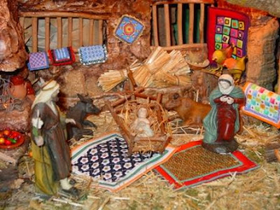 Doña Ilusión le hizo ver a su amiga doña Fantasía, que podían tomarse ciertas licencias con la Historia, pero no con la decoración del Pesebre, ¿Donde se ha visto un Quilt torcido en la pared?