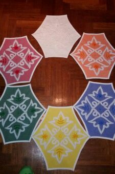 Todos los bloques estaban adornados con Rayón, no sabia como adornar este, me acordé de mi viejo amigo: "El punto de palestrina", siempre me salva cuando no se como seguir